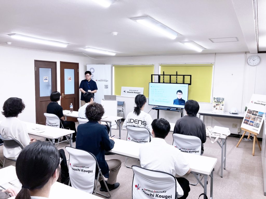 限られた時間の中での見学会となりましたが、これからの未来を担う若い方々へ、「ものづくり」の面白さや「サイン&ディスプレイ業とはどんな業種なのか?」を知って頂けるようご説明させて頂きました。