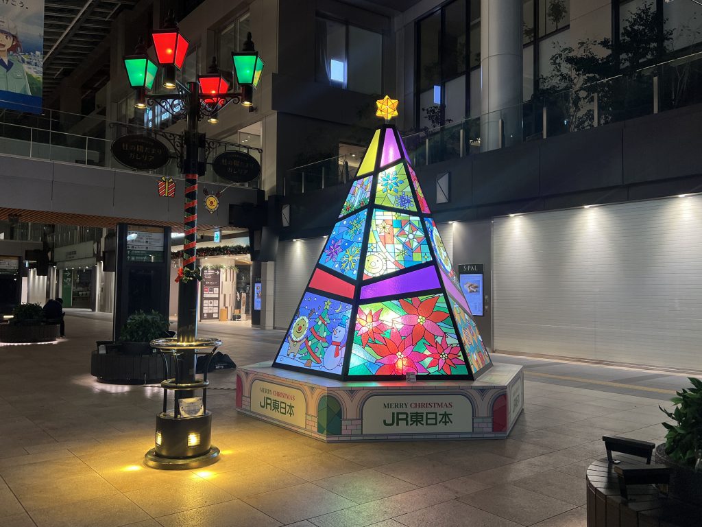 弊社ではこの度、杜の陽だまりガレリア(仙台駅東西自由通路)に、株式会社ジェイアール東日本企画様のディレクションの元、オリジナルクリスマスツリーの製作・設置を行いました。